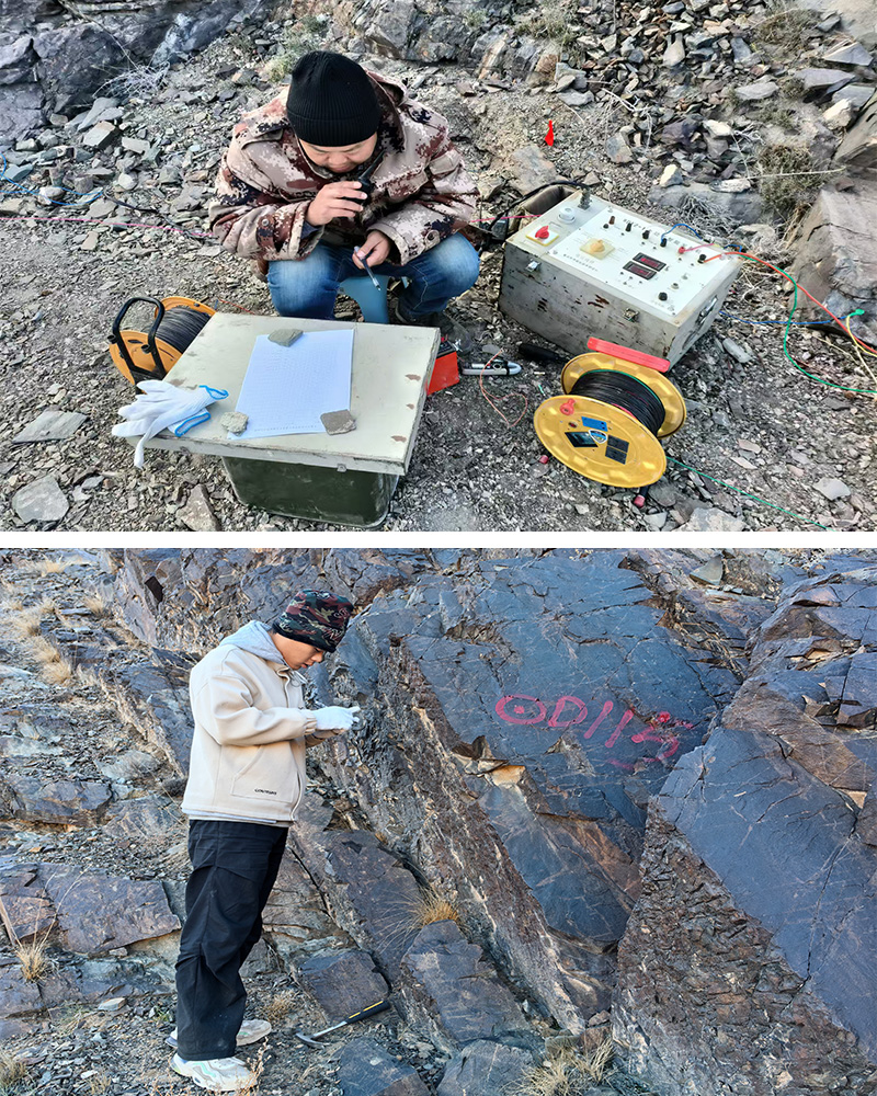 该项目地点位于木垒县,属中蒙边界中低山区,人烟稀少,通讯条件较差,历年来在11月中旬都会大雪封山,导致项目面临诸多困难。为了赶工期,抢时间,项目成员在党员郭广成的带领下,不怕艰苦,不畏严寒,勇敢攀越,通过地形测量、地质测量、水工环地质调查、物探激电中梯扫面、物探激电测深测量、钻探、槽探并辅以工程点测量等综合勘查方法扎实开展工作。截至目前,已完成实物工作量:地形测量3.8km2、地质测量0.56km2、水工环地质调查0.56km2、物探激电中梯扫面0.44km2、物探激电测深测量16点,机械岩心钻探5个孔共计458.50m、钻孔编录458.50m、槽探编录196m、工程点测量22个。