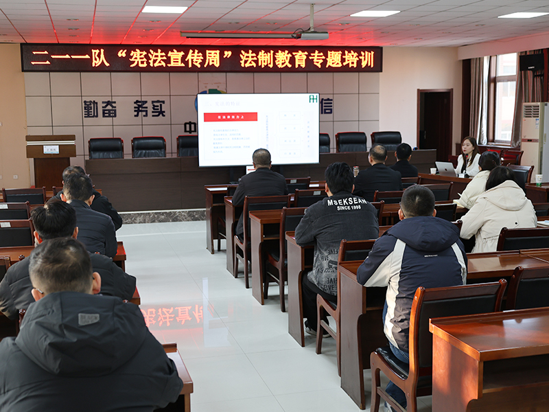 为深入学习贯彻习近平法治思想,落实2025年陕西省宪法宣传周工作要求,提升干部职工法治素养,12月5日,二一一队在四楼大会议室开展“宪法宣传周”普法专题培训,30余名干部职工参与学习。