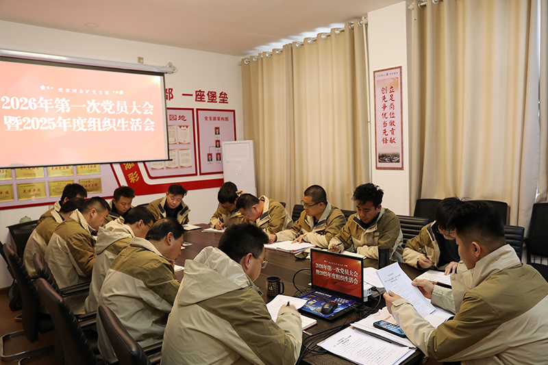 3月8日下午,陕西庞家河金矿党支部在金矿党建活动室召开2026年第一次党员大会暨2025年度组织生活会,同步开展民主评议党员工作。会议由陕西庞家河金矿董事长、党支部书记魏巍主持。支部全体党员、入党积极分子共计20余人参加会议。